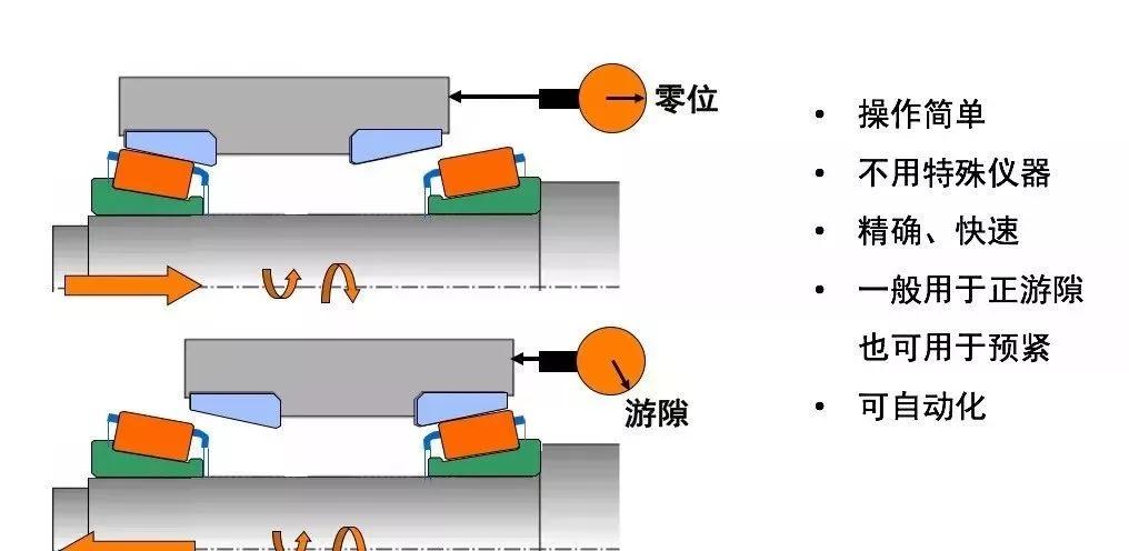 在一定的安裝力作用下,測(cè)量墊片或隔圈間隙來(lái)獲得正確的游隙。